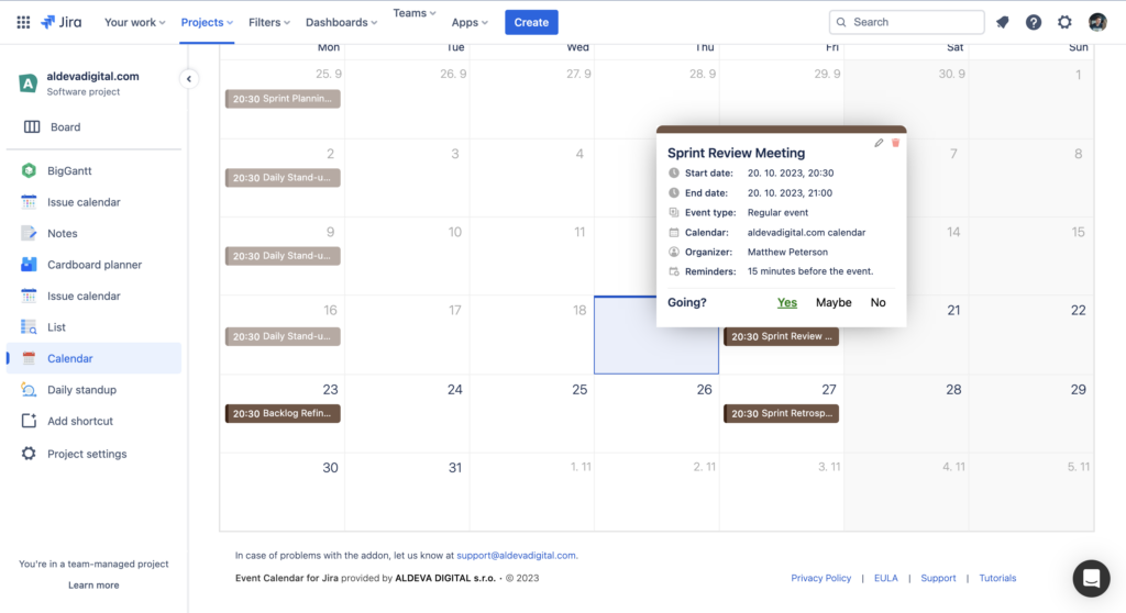 - export the project calendar into 3rd party systems (your mobile app calendar, Outlook365, Apple calendar…)